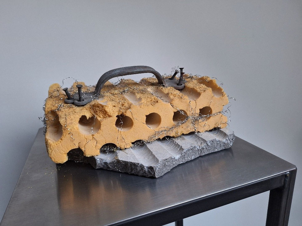 Belgisch hardsteen, schuimplaat en metaal
